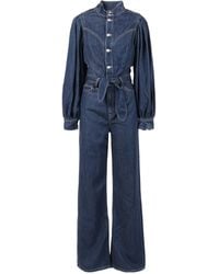 7 For All Mankind Women's Blue Long-Sleeve Jumpsuit