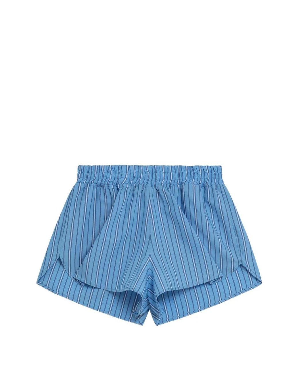 Women's Blue Striped Cotton Shorts