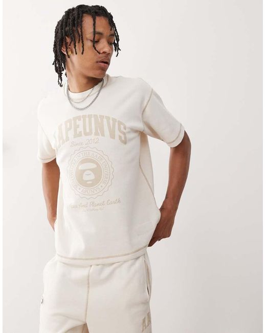 Men's White Aape By A Bathing Ape Reversible Campus Logo T-shirt