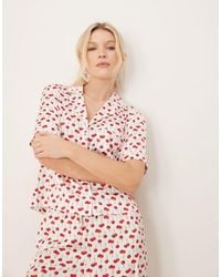 Lingerie & Nightwear by Abercrombie & Fitch Part of a co-ord set Shorts sold separately All-over print Revere collar Button placket Short sleeves Chest pocket Regular fit Colour: white