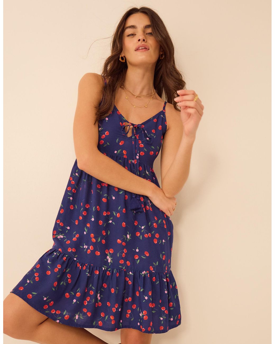 - Cherry Print Tassel Tie Mini Dress