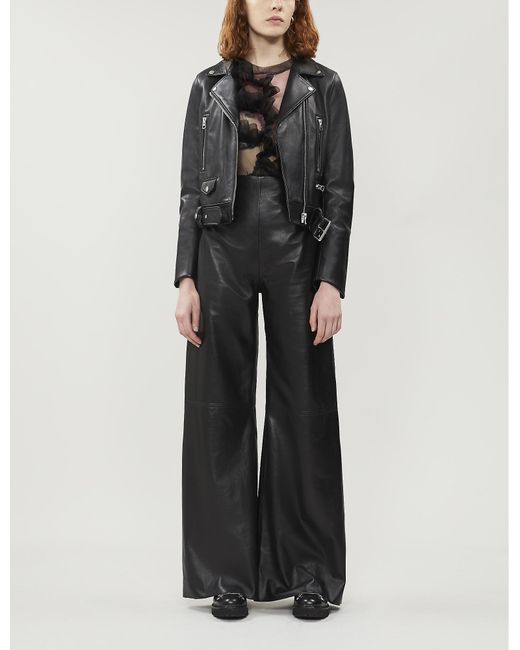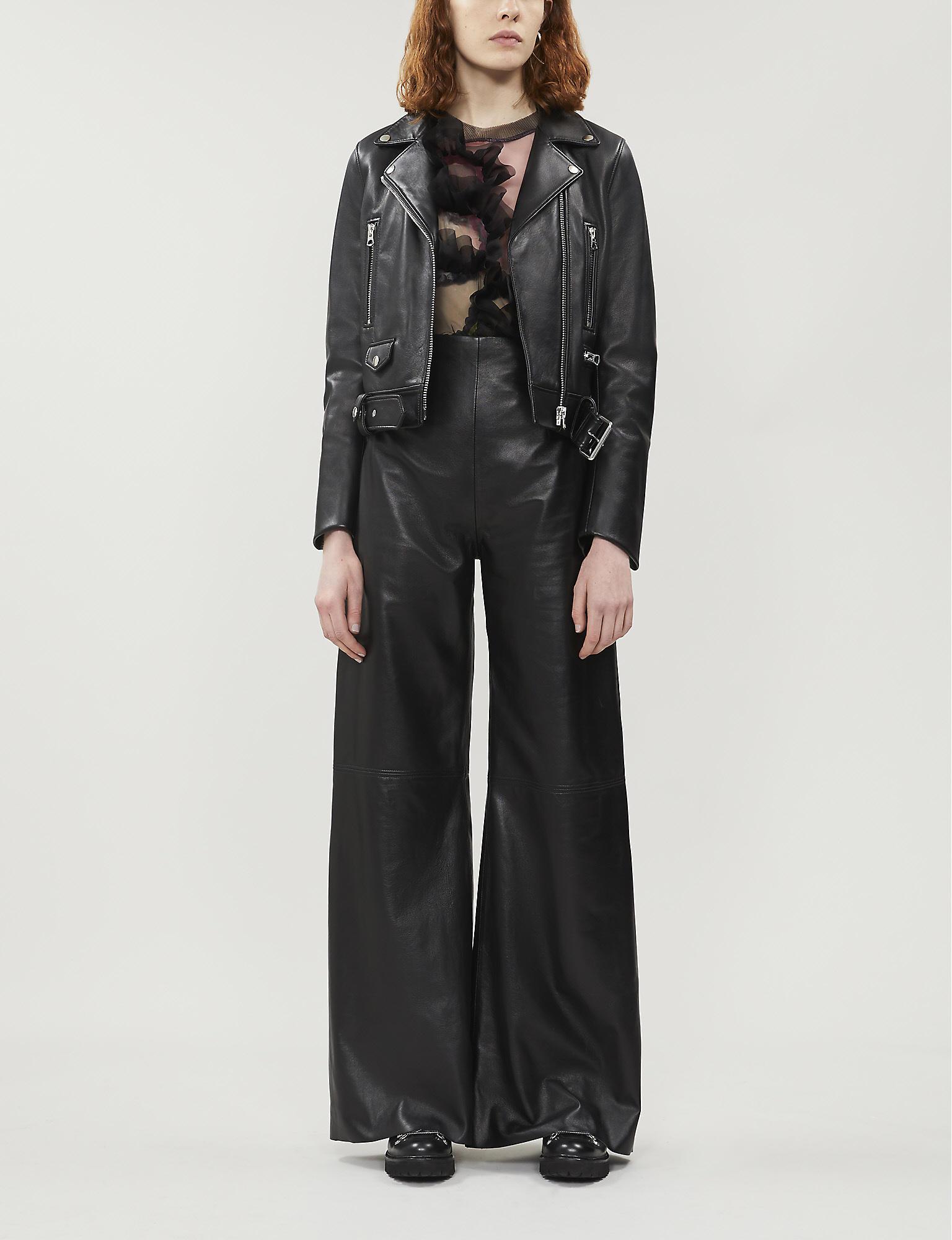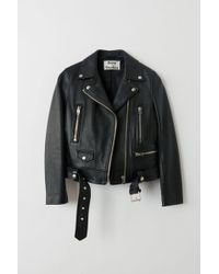 Acne Studios' classic biker jacket is a timeless investment that will go with everything from dresses to T-shirts. Cut from supple black leather, this style is detailed with polished silver hardware and lined in satin so it will easily slip on. Use the buckle-fastening belt to further define the slim silhouette.
