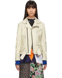 Inspired by alternative rocker Bobby Gillespie and fusing this with hard-edged 70s accents, this season's ready-to-wear presents an imperfect and charismatic idea of femininity. The Mock Leather Motorcycle Jacket is constructed from luxurious lamb leather in a classic biker silhouette and features zipped details and buckled waist belt. Pure lamb leather in a natural finish. Notched collar. Zipped cuffs. Multiple zipped pockets. Zip fastening. Silver-tone hardware. Modern aesthetic. Material. 100% lamb leather. Lining: 52% viscose, 48% cotton. Specialist leather clean only. 100% lamb leather. Lining: 52% viscose, 48% cotton. Specialist leather clean only.