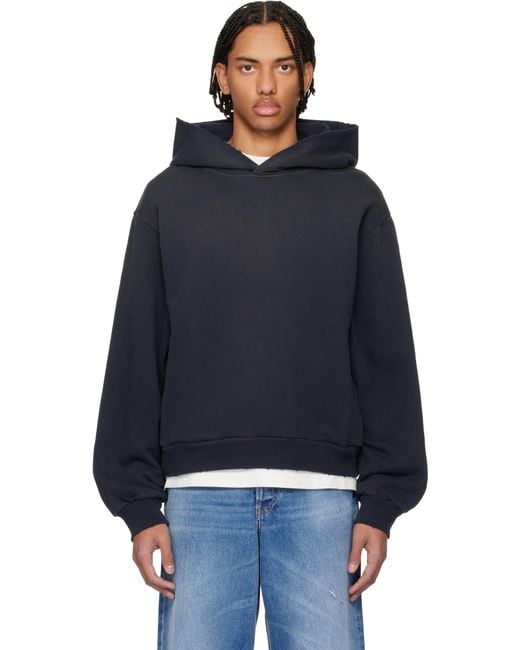French terry hoodie. · Subtle distressing throughout · Rib-knit hem and cuffs · Seam pockets at sides · Dropped shoulders · Logo printed at back Supplier color: Black Colour: blue