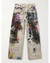 Acne Studios Men's Green Printed Canvas Wide-leg Trousers