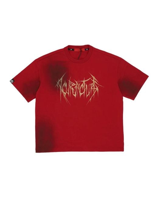 Acupuncture short sleeve choke t-shirt for men with a soft fit. Features Logata print on the front. Made of 100% cotton. Hand washable or machine wash following the label instructions. Colour: red