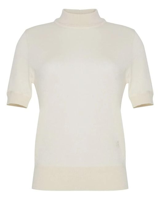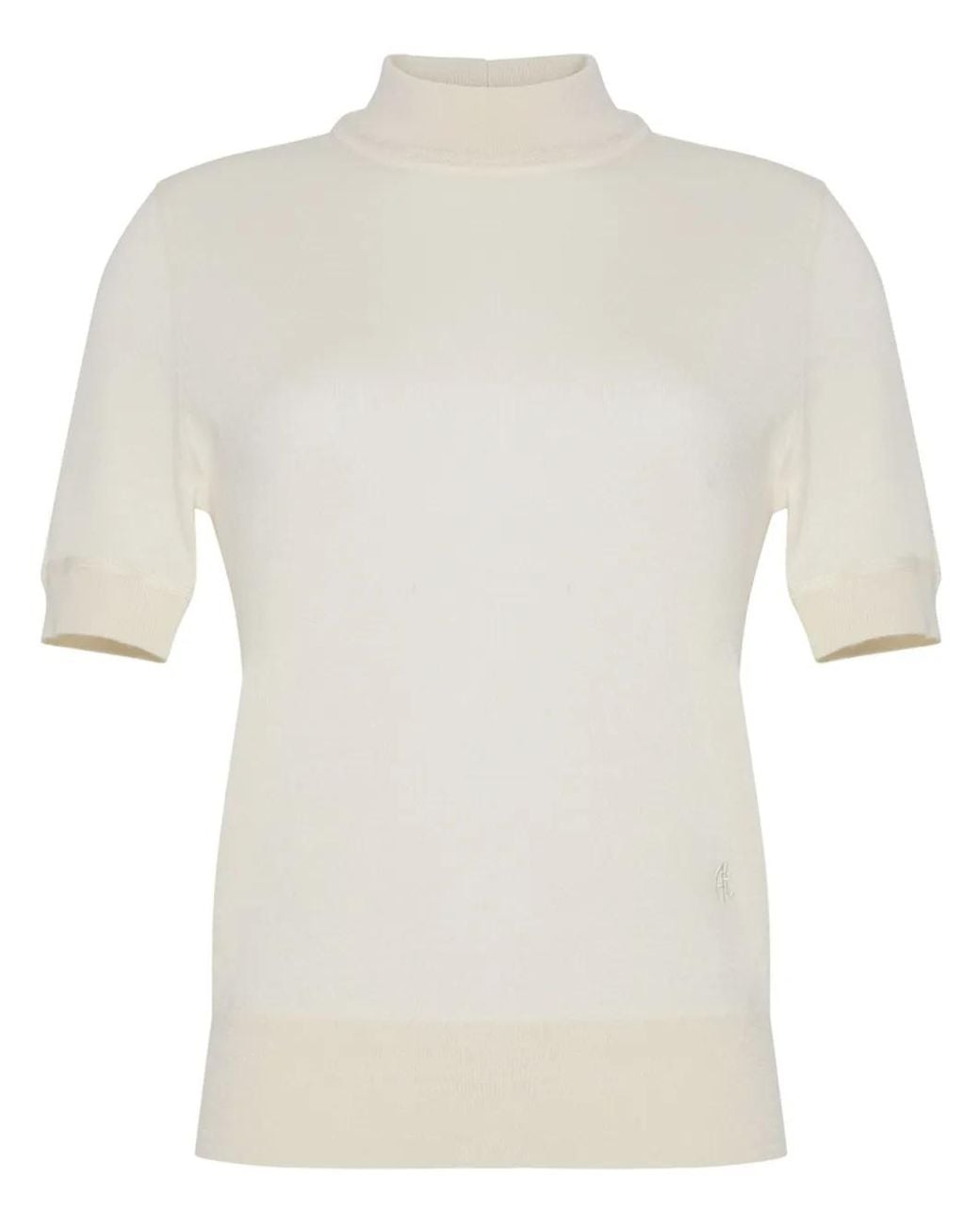 Ivory white cashmere knitted construction mock neck half-length sleeves ribbed-knit edge Size: S. Gender: Female. Material:Cashmere. Colour: white