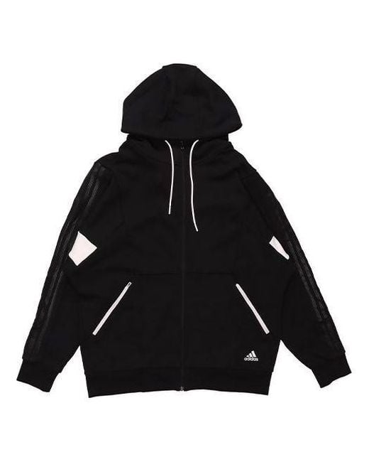 Men's Black St Kn Block Jkt Sports Training Knit Hooded Logo Jacket