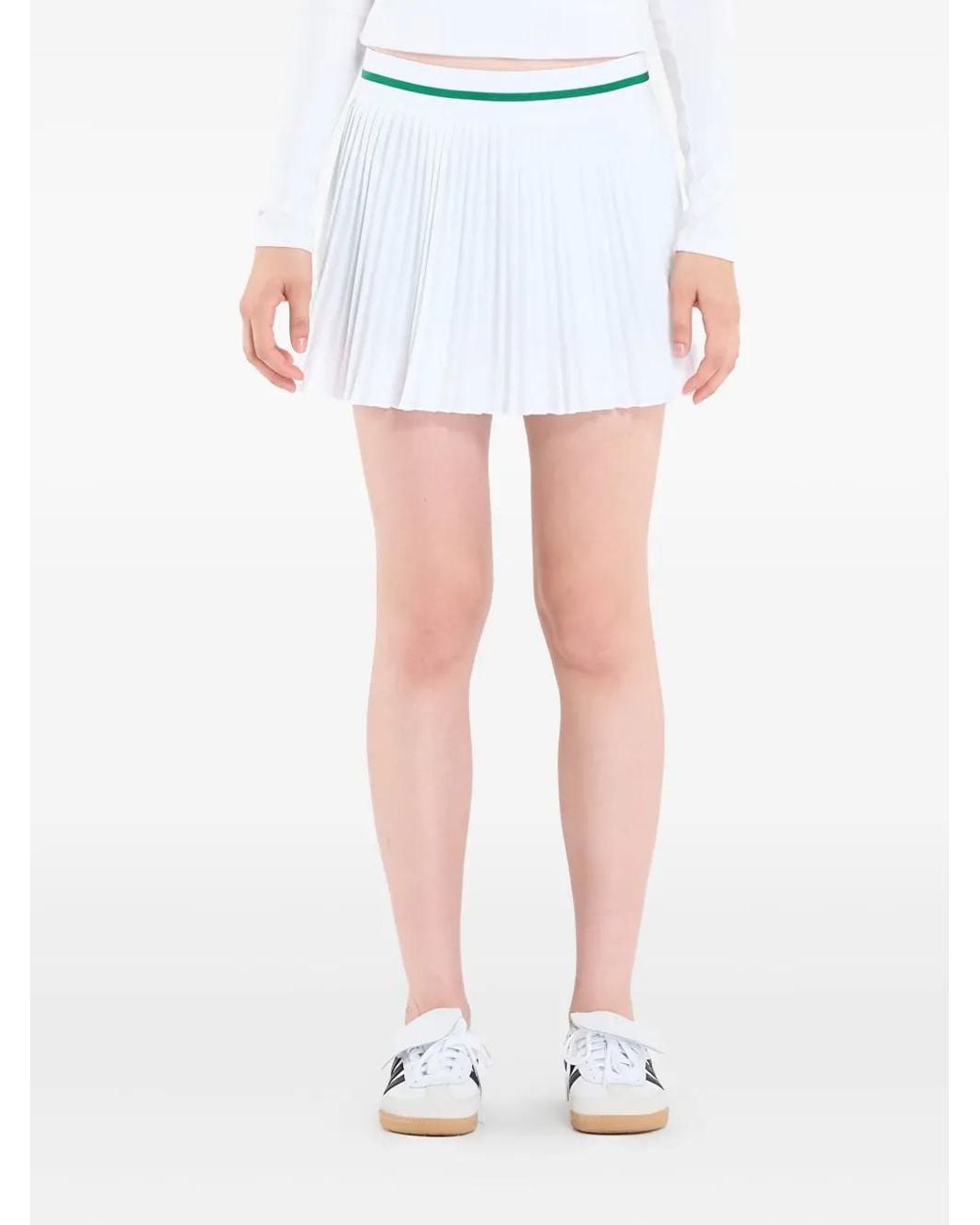 White pleated elasticated waistband logo detail green trim Size: L. Gender: Female. Material:Recycled Polyester/Elastane. Colour: white