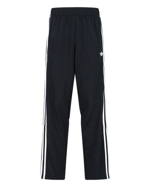 Adidas firebird sports trousers in black recycled fabric with mid elastic waistband, two side zip pockets, iconic contrasting side bands, front "trefoil" logo, zip on the leg, straight leg. - product made from recycled materials Colour: blue