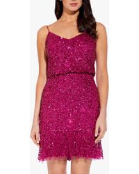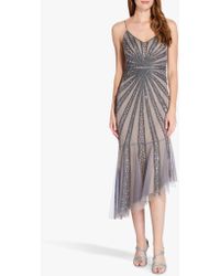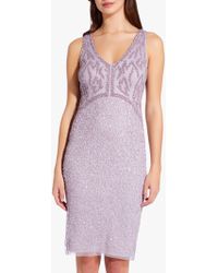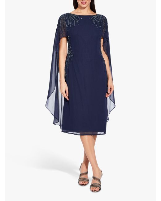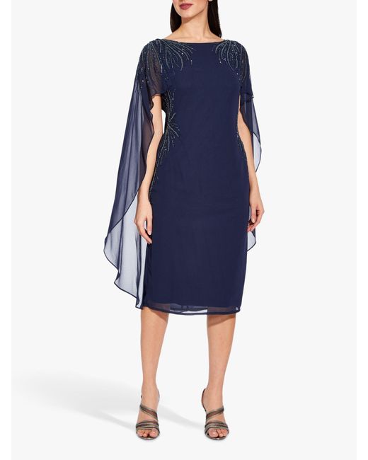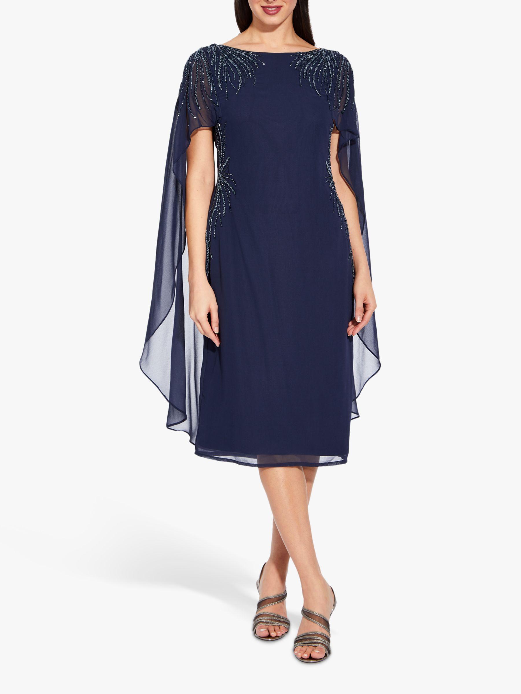 Inspired by classic flapper style, this Adrianna Papell gown will add a touch of vintage style to your party looks. Cut in short sheath silhouette, the glittering silver sequins and beads, fringed hemline, plunging V-back, and sheer sleeve detailing complete a striking design. Personal styling advice. Dress Shape: Straight. Drying Instructions: Please see care label. Length Read tooltip information Length Mini - A mini style falls mid-thigh to above the knee, Midi - A midi length is knee- to calf-length, Maxi - A maxi length is ankle- to floor-length: Knee Length. Lining Type: Fully Lined. Main Fabric: Polyester. Material: 100% polyester. Model Details: 5'8" and wears a size 8. Neckline: Round Neck. Pattern: Embellishment. Sleeve: Sleeveless. Washing Instructions: Spot Clean Only. Colour: blue