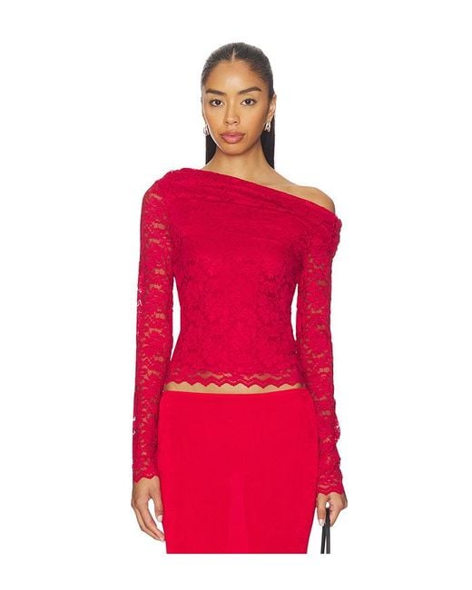 AFRM Barry Silken Lace Top in Red. Size L. Also in M, S, XS, XXS. AFRM Barry Silken Lace Top in Red. Size M, S, XS, XXS. Self: 91% nylon 9% spandex Lining: 95% polyester 5% spandex. Made in China. Hand wash. Fully lined. Pull-on styling. Lightweight lace textile with slinky jersey lining. Ruched bodice with draped off-shoulder neck. AFFM-WS532. AT042995NV25. AFRM stands for an affirmation of one's self and one's style. They're a community, presenting edgy pieces that capture your spirit, your moments, your moods. Every detail is intentional, to AFRM you from the inside out. In AFRM, be beautifully, powerfully present in your world.