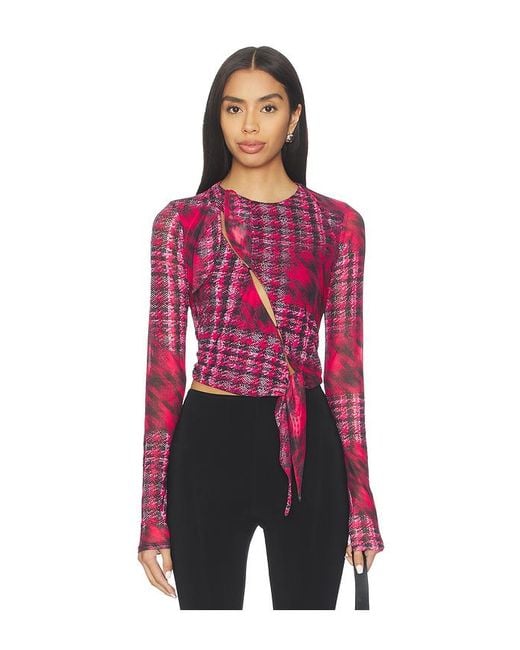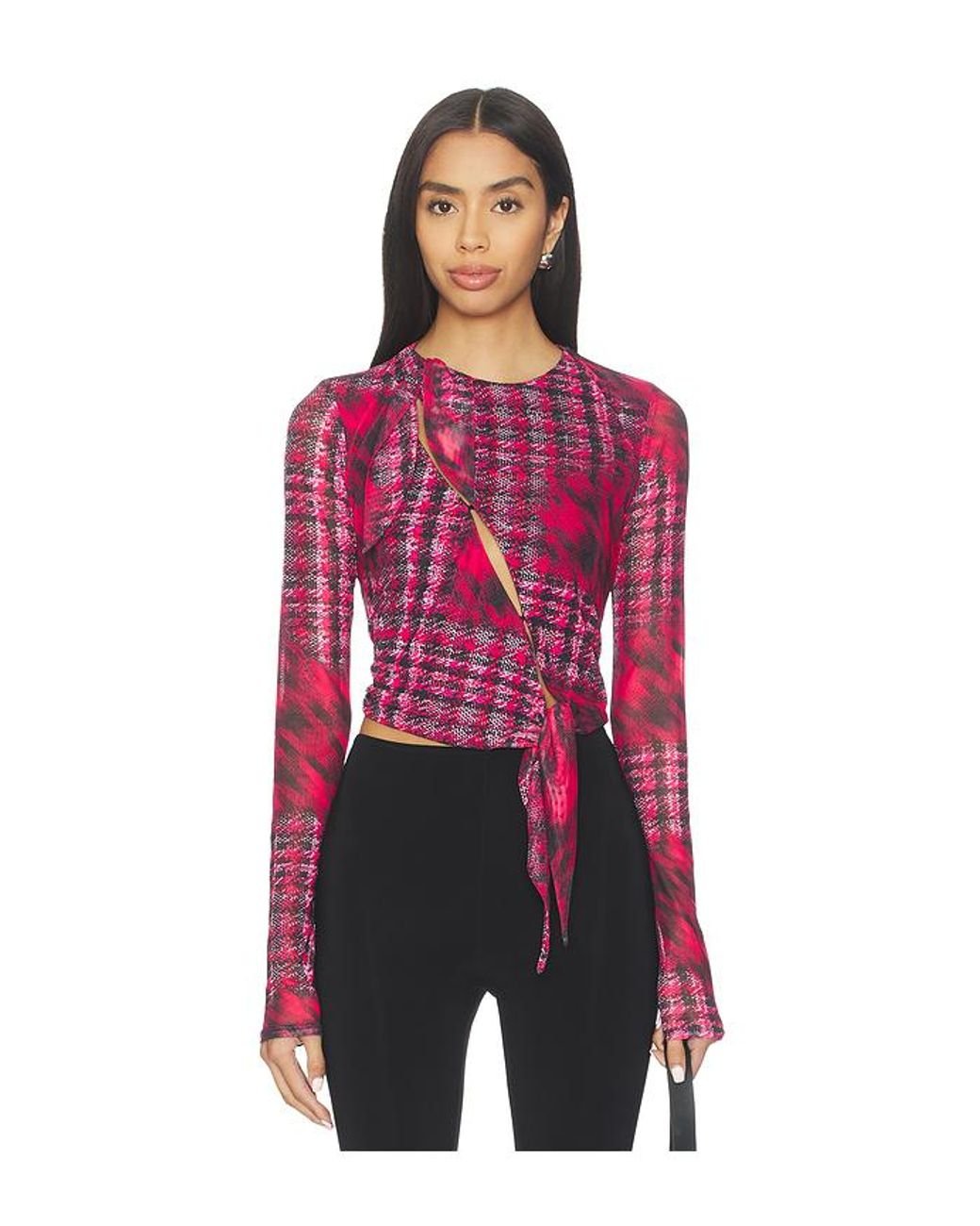 AFRM Chaya Top in Red. Size M. Also in S, XS, XXS. AFRM Chaya Top in Red. Size S, XS, XXS. 95% polyester 5% spandex. Made in China. Machine wash gentle. Diagonal button closure across front. Semi-keyhole openings along closure. AFFM-WS530. AT043007NV25. AFRM stands for an affirmation of one's self and one's style. They're a community, presenting edgy pieces that capture your spirit, your moments, your moods. Every detail is intentional, to AFRM you from the inside out. In AFRM, be beautifully, powerfully present in your world.
