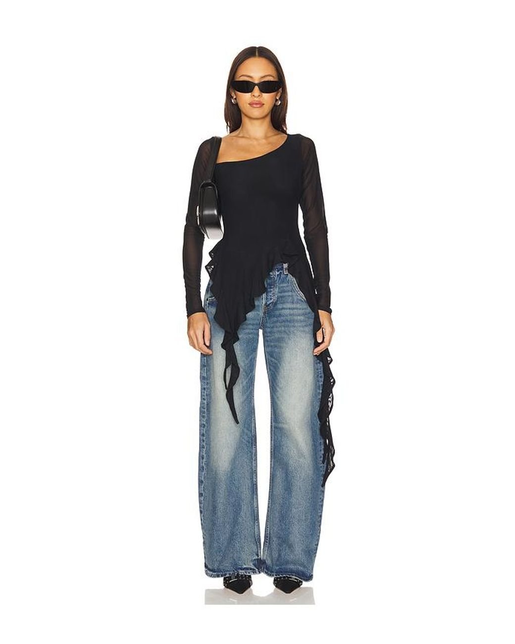 AFRM Doris Top in Black. Size M. Also in XS, XXS. AFRM Doris Top in Black. Size XS, XXS. Self: 95% polyester 5% spandex Lining: 95% polyester 5% spandex. Made in China. Machine wash cold. Asymmetric hem with ruffled trim. Sheer sleeves. Lightweight mesh fabric. AFFM-WS432. AT028893JN25. AFRM stands for an affirmation of one's self and one's style. They're a community, presenting edgy pieces that capture your spirit, your moments, your moods. Every detail is intentional, to AFRM you from the inside out. In AFRM, be beautifully, powerfully present in your world.