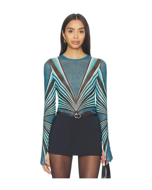 AFRM Kaylee Top in Blue. Size L. Also in M, S, XL, XS, XXS. AFRM Kaylee Top in Blue. Size M, S, XL, XS, XXS. Self: 91% nylon 9% spandex Lining: 95% polyester 5% spandex. Made in China. Hand wash cold. Pull-on styling. Garment is made with a semi-sheer fabric, undergarments can show through.. Thumbhole cuff. AFFM-WS529. AT028697NV25. AFRM stands for an affirmation of one's self and one's style. They're a community, presenting edgy pieces that capture your spirit, your moments, your moods. Every detail is intentional, to AFRM you from the inside out. In AFRM, be beautifully, powerfully present in your world.