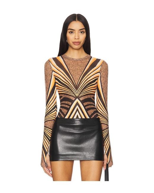 AFRM Kaylee Top in Brown. Size M. Also in S, XS. AFRM Kaylee Top in Brown. Size S, XS. 95% polyester 5% spandex. Made in China. Machine wash. Graphic throughout. Thumbhole design. Lightweight mesh fabric. Garment is made with a semi-sheer fabric, undergarments can show through. AFFM-WS417. AT028697NV24. AFRM stands for an affirmation of one's self and one's style. They're a community, presenting edgy pieces that capture your spirit, your moments, your moods. Every detail is intentional, to AFRM you from the inside out. In AFRM, be beautifully, powerfully present in your world.