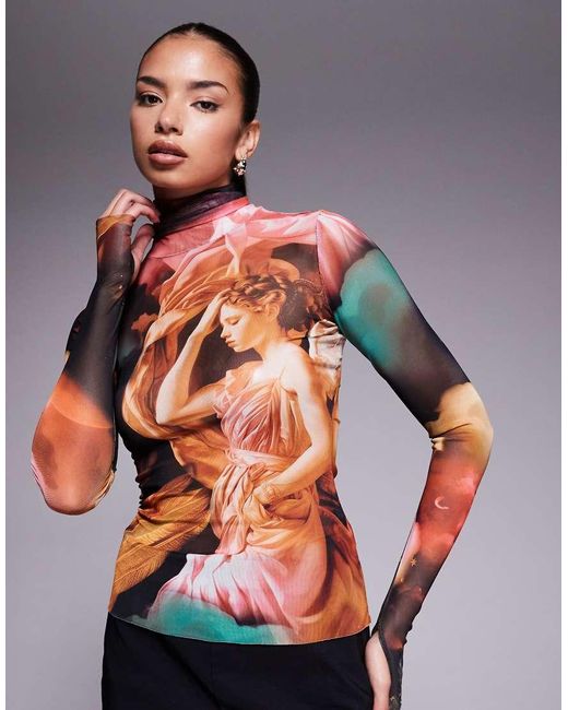 Tops by AFRM All-over print Turtle neck Long sleeves Super-skinny fit. Polyester/Spandex. Colour: grey
