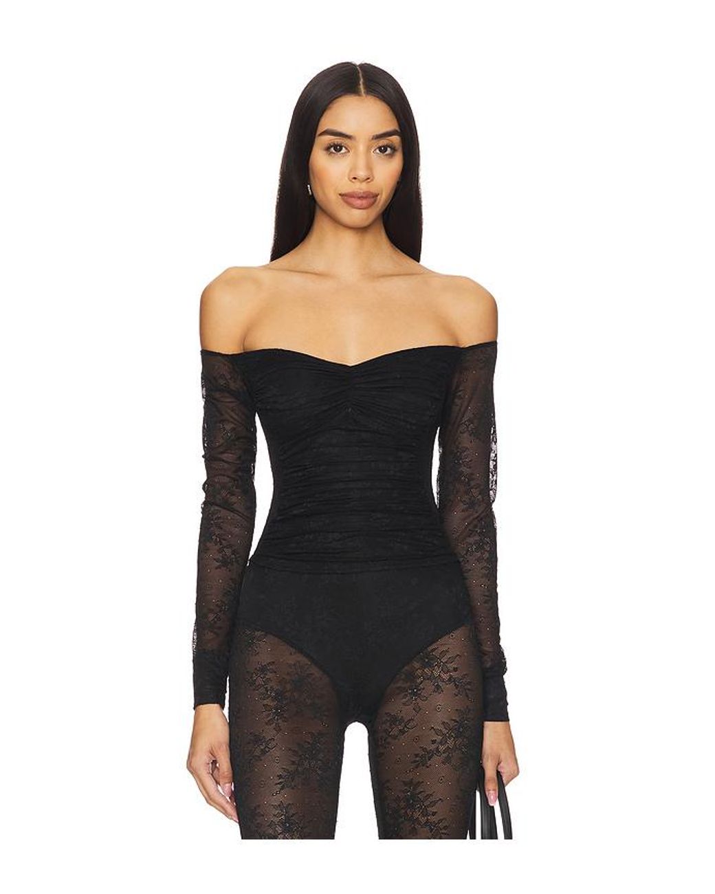 AFRM Odilla Lace Combo Top in Black. Size L. Also in M, S, XL. AFRM Odilla Lace Combo Top in Black. Size M, S, XL. Self: 92% nylon 8% spandex Lining: 95% polyester 5% spandex. Made in China. Hand wash. Partially lined. Lightweight ruched lace fabric. Garment is made with a semi-sheer fabric, undergarments can show through. Item not sold as set. AFFM-WS414. AT0028876NV24. AFRM stands for an affirmation of one's self and one's style. They're a community, presenting edgy pieces that capture your spirit, your moments, your moods. Every detail is intentional, to AFRM you from the inside out. In AFRM, be beautifully, powerfully present in your world.