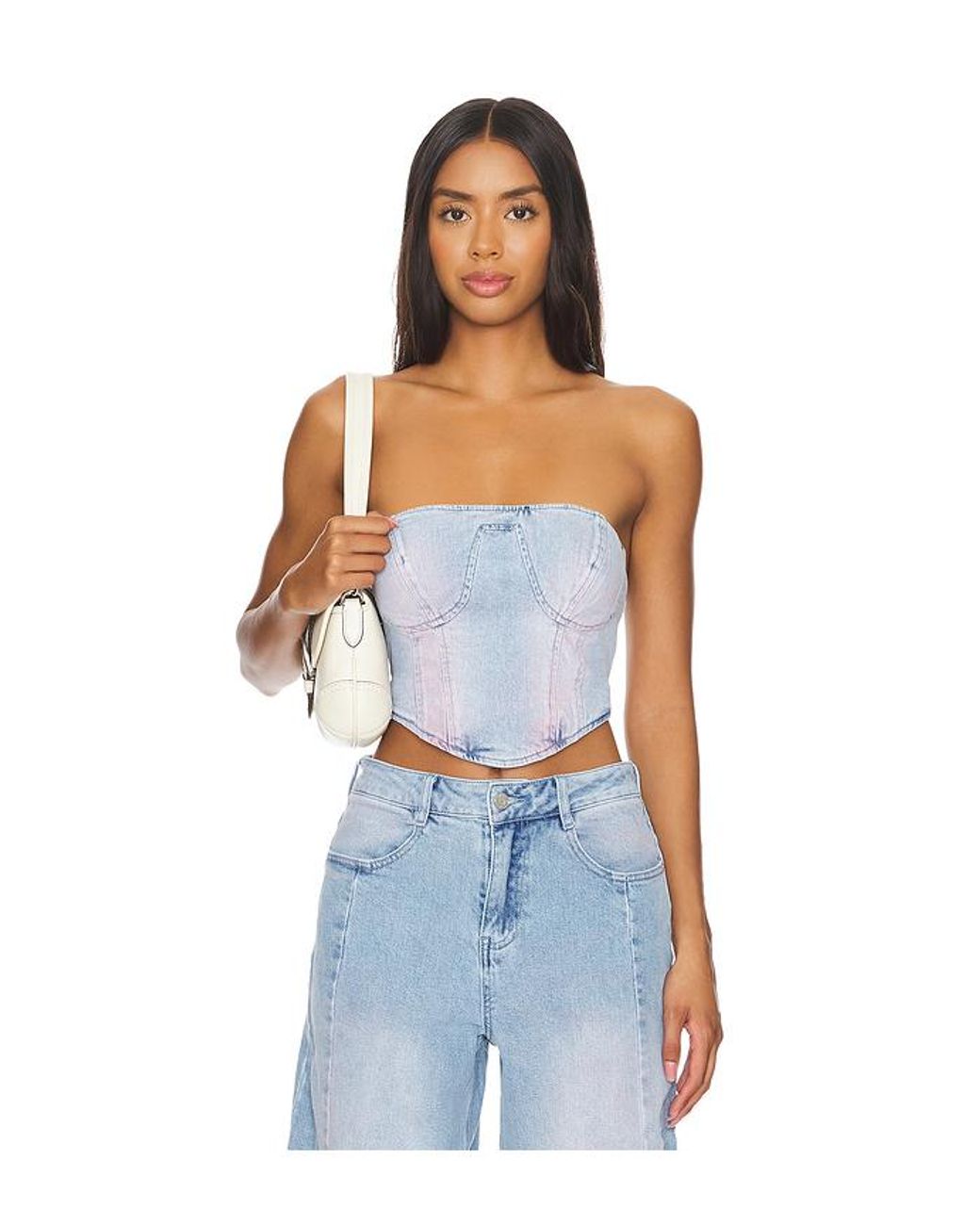 AFRM Reid Bustier in Denim-Light. Size XL. Also in XXL. AFRM Reid Bustier in Denim-Light. Size XXL. Self: 99% cotton 1% spandex Lining: 95% polyester 5% spandex. Made in China. Machine wash. Hidden back zipper closure. Padded cups. Item not sold as set. Rigid denim with faded pink detail. AFFM-WS379. ARVT041645BP. AFRM stands for an affirmation of one's self and one's style. They're a community, presenting edgy pieces that capture your spirit, your moments, your moods. Every detail is intentional, to AFRM you from the inside out. In AFRM, be beautifully, powerfully present in your world.
