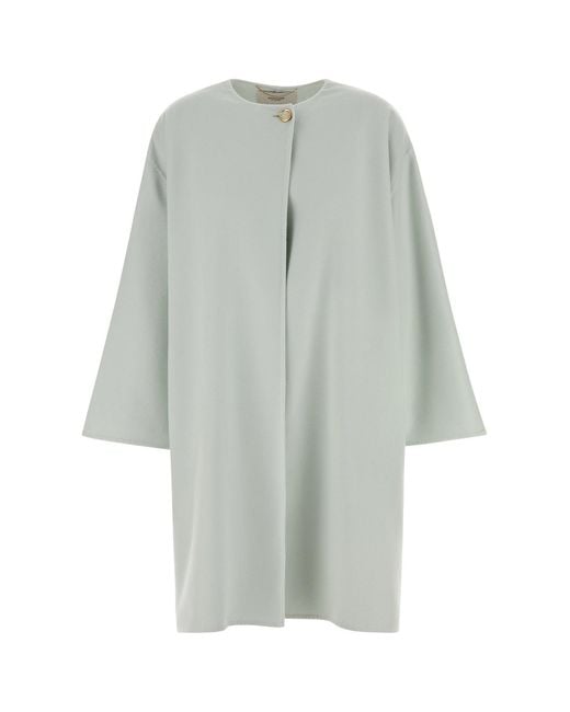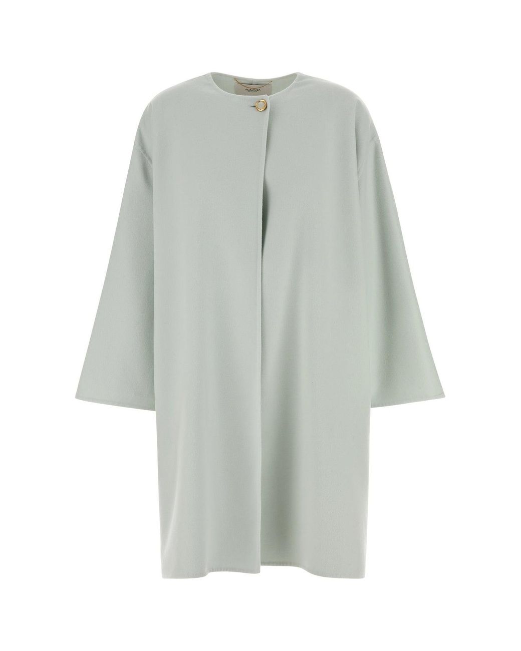 Coat realized in wool and cashmere. Crew-neck. Closure by a single jewel button. Seam pockets. Lateral slits on the hemline. Unlined. Colour: grey