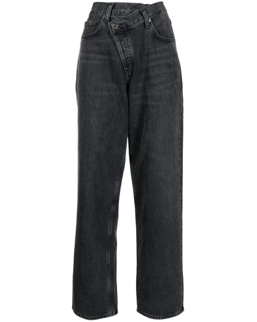 Criss Cross High-Waist Straight-Leg Jeans - Grey