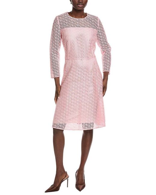 Women's Pink Logo Lace Silk-Lined Midi Dress