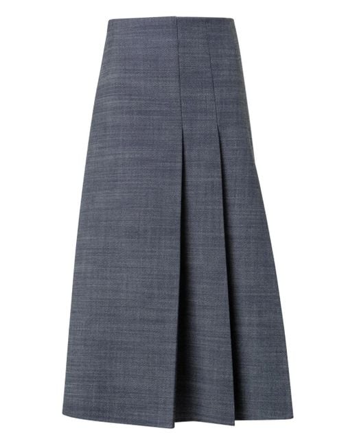 Striped-Detail Pleated Midi Skirt - Blue