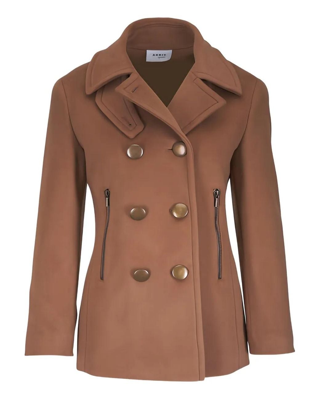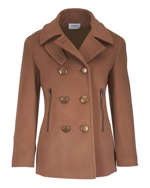 Brown double-breasted notched lapels zip detailing button fastening long sleeves Size: 4. Gender: Female. Material:Virgin Wool/Cashmere/Polyamide. Colour: brown