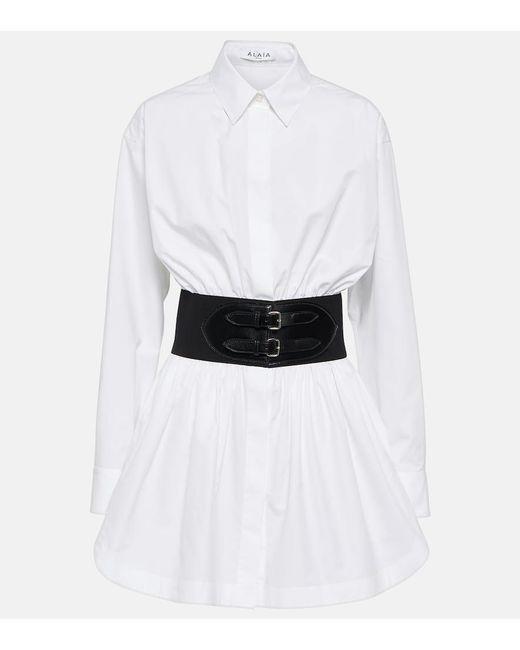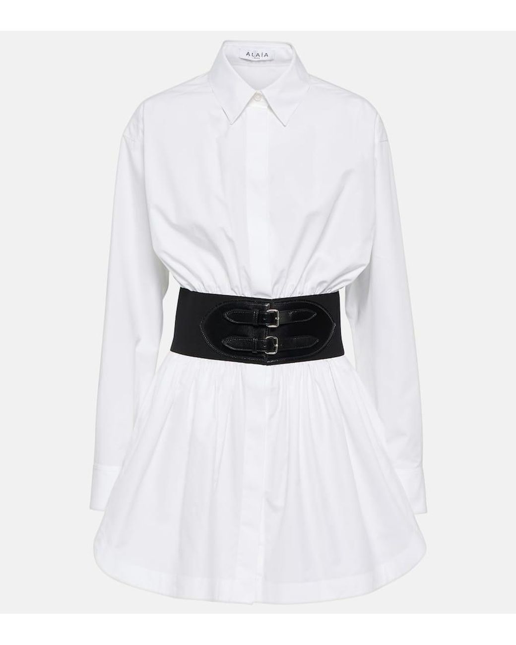 Archetypes Belted Leather-Trimmed Cotton-Poplin Skirt - Black