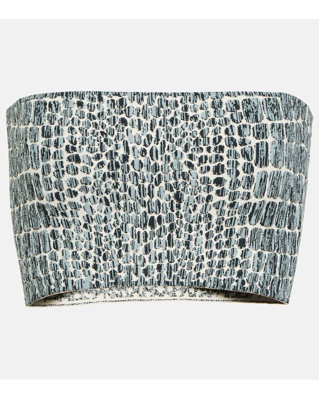 Cropped Metallic Open-Knit Bandeau Top - Natural