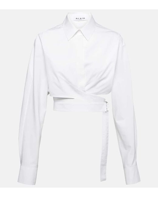 Women's White Crossover Poplin Long-Sleeved Shirt