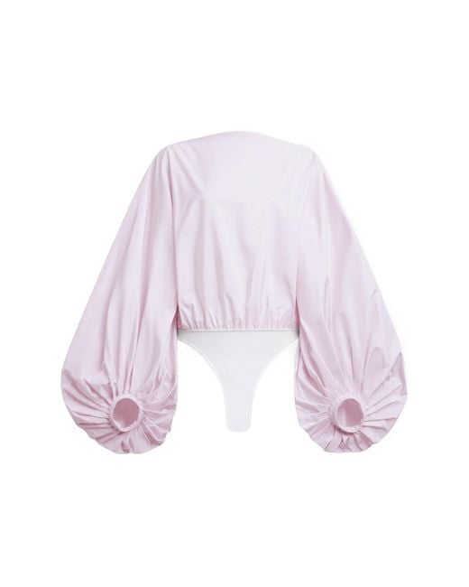 Women's Purple Alaïa Ballon Open-Back Bodysuit Top