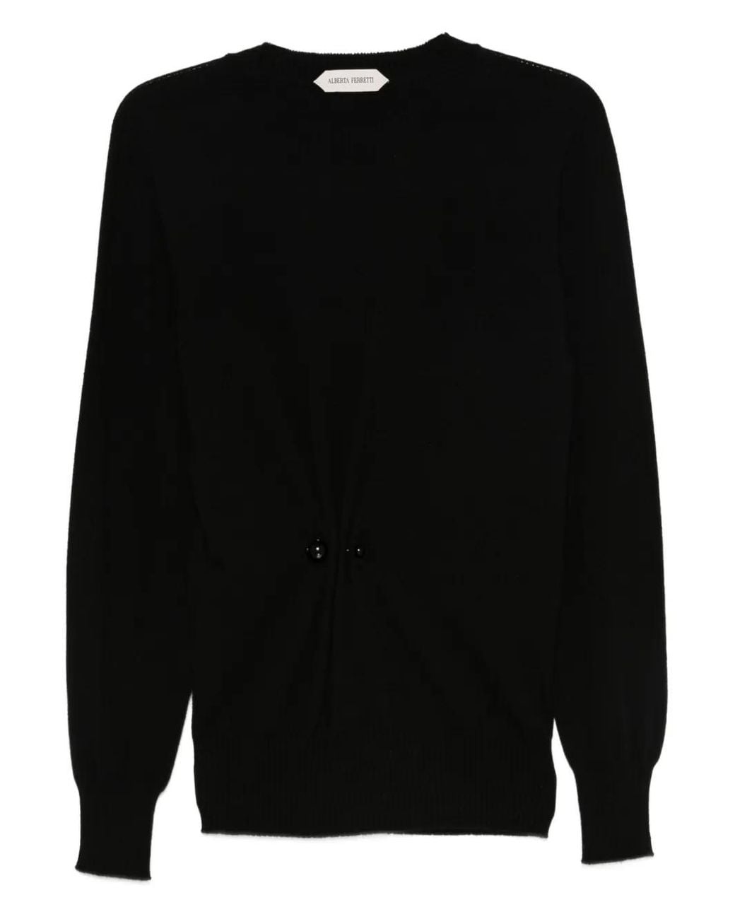 Crystal Appliqué Braided Jumper With High Neckline - Black