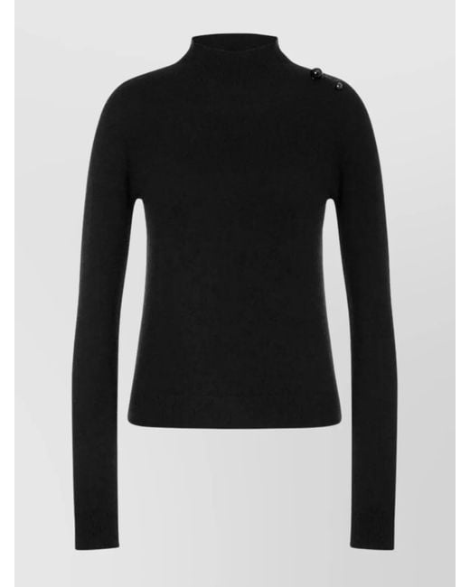 Women's Black Mock Neck Long Sleeve Knitwear With Buttons