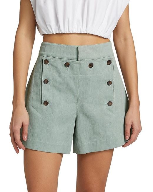 Crafted of a cotton-linen blend, the Lucas shorts from A.L.C. feature a vintage-inspired wide-leg design with a sailor-style button panel in the front. Banded waist. Concealed closure 65% cotton/35% linen. Machine wash. Rise, about 13.25". Inseam, about 3.5". Leg opening, about 13.25". Model measurements: 5'10" tall.. Model is wearing a US 4.