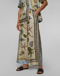 Go to FARFETCHSand beige front button fastening all-over graphic print camp collar short sleeves Size: 14. Gender: Female. Material:Silk. Colour: natural