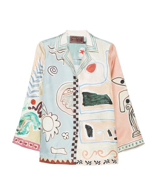 Alémais X Lrnce Michelle Artwork-Print Silk Shirt - White