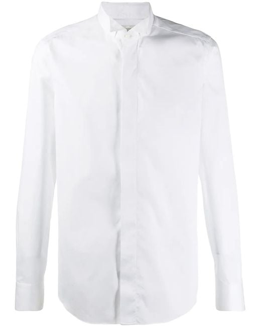 Men's White Concealed Front Shirt