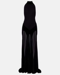 McQueen Women's Black Cotton Velvet-Trimmed Gathered Silk-Georgette Turtleneck Gown