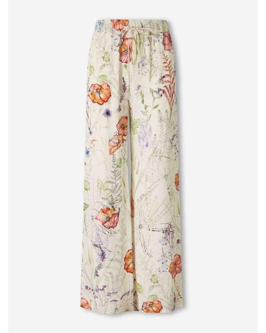 Women's White Floral Straight Leg Trousers