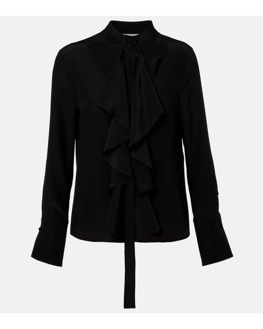 Women's Black Ruffled Silk Blouse