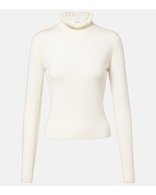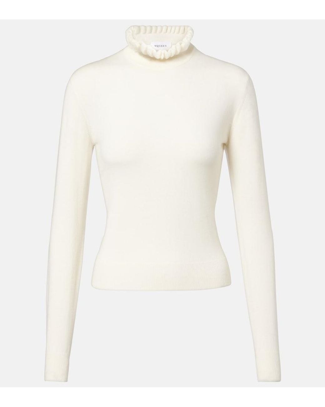 Material: 95% wool, 5% polyester. Care instructions: dry clean. Made in Italy. Designer colour name: Ivory. Item color: white. Trim: 81% wool, 14% polyamide, 4% polyester, 1% elastane. Collar: turtleneck. Cuff: ribbed. Hem: ribbed. Wool. Colour: white