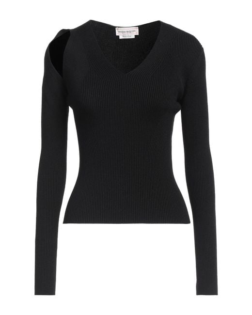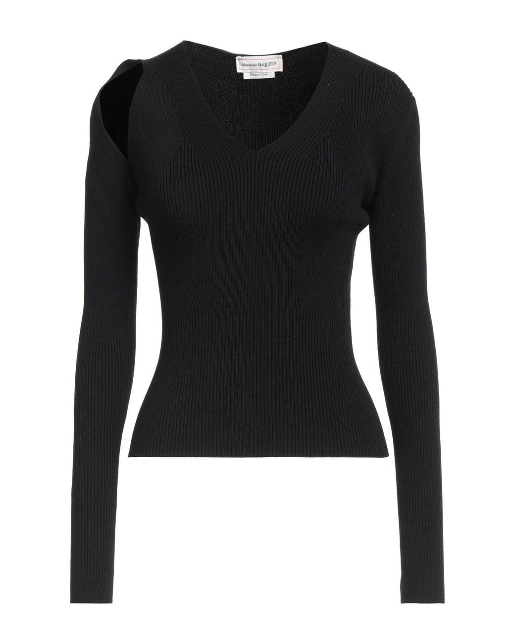 MCQUEEN. knitted, lightweight knit, no appliqués, plain colour, v-neck, long sleeves, dry clean, do not tumble dry, do not bleach, small sized. 95% Wool, 5% Polyester.