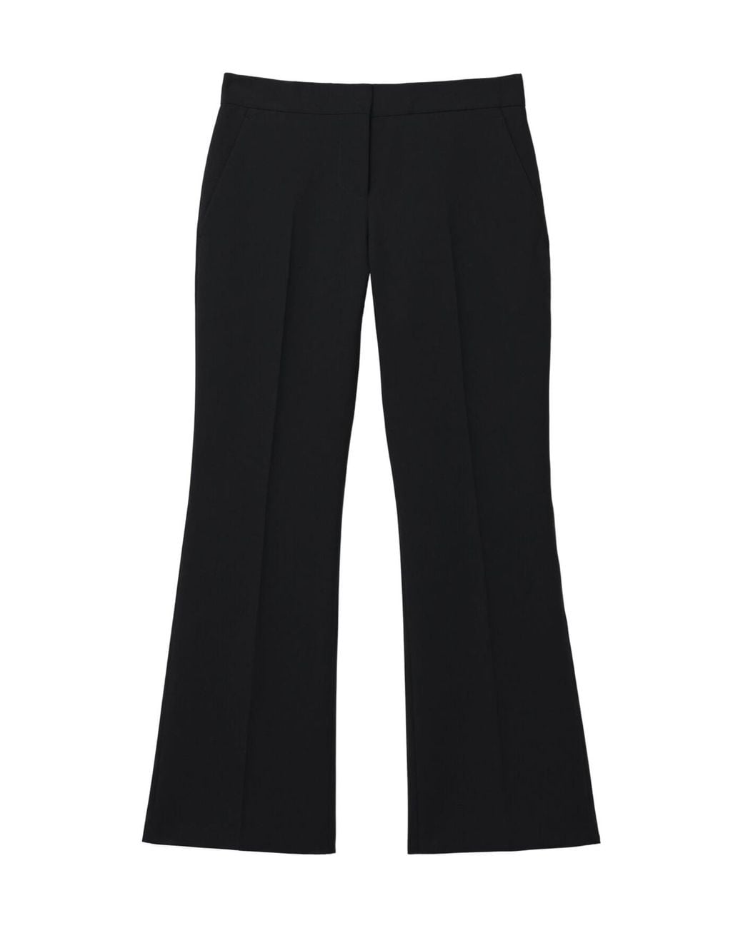 Regular waist, side pockets, invisible zippers and hooks. Colour: black