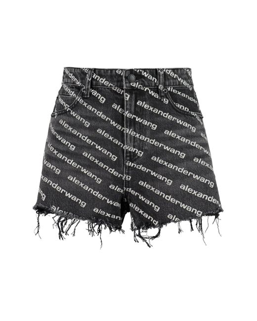 All over logo print. Side slits. Frayed hem. 100% Cotton.
