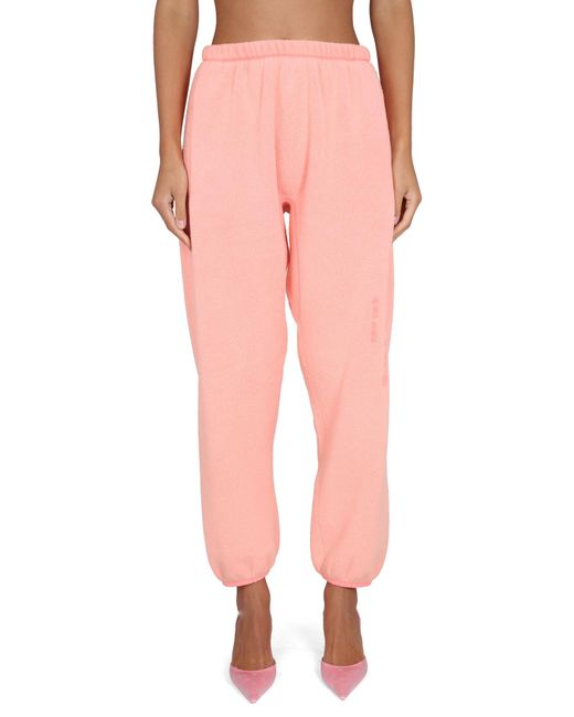 Women's Pink Cotton Fleece JOGGING Trousers With Logo Embroidery
