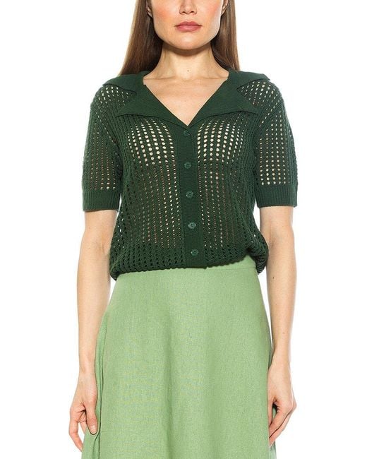 About the brand: Beautiful styles for the modern woman. Top in green Approximately 22.5in from shoulder to hem Design details: Button Down Detail, Short Sleeves Button front closure 100% Acrylic Hand wash Imported Colour: green