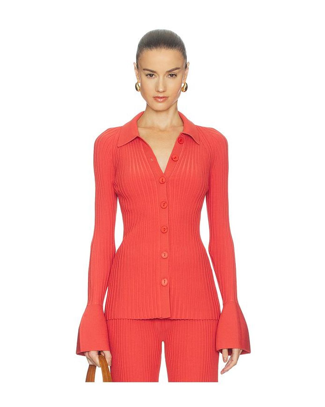 Alexis Olena Top in Peach. Size L. Also in M, S, XL, XS. Alexis Olena Top in Peach. Size M, S, XL, XS. 58% viscose 35% nylon 7% elastane. Made in China. Dry clean. Front button closure. Deep V-neck with flared cuffs. Knit fabric. AXIS-WS459. A3250102-0708. A luxurious clothing line born out of Miami and brain child of designer Alexis Barbara, the collection is influenced by Mediterranean travels and designed for those who are delicately sophisticated and truly fashion forward.