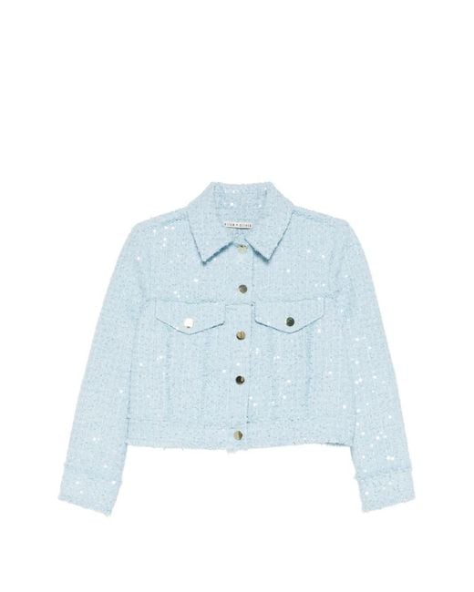 Women's Blue Chloe Sequin-Detail Cropped Tweed Jacket