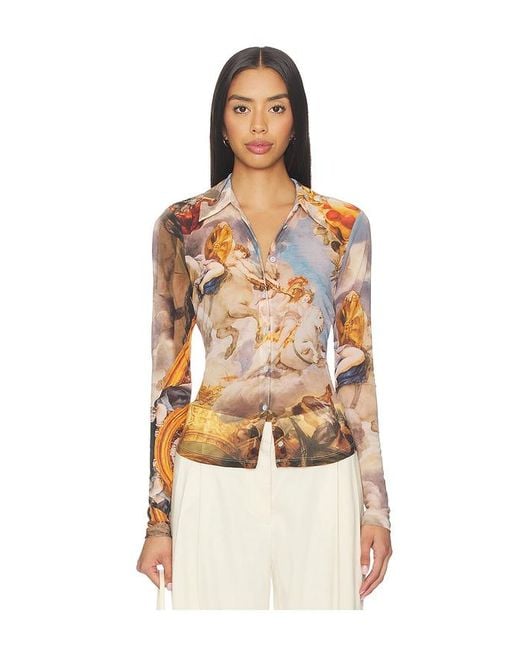 Alice + Olivia Jade Mesh Top in Baby Blue,Neutral. Size L. Also in S, XL, XS. Alice + Olivia Jade Mesh Top in Baby Blue,Neutral. Size S, XL, XS. 96% nylon 4% elastane. Made in China. Dry clean only. Front button closure. Garment is intentionally sheer, undergarments will show through. Please note undergarment not included. Lightweight mesh fabric. Darted waist. ALI-WS714. CC512P02033. Launched in 2002, alice + olivia by Stacey Bendet is a sophisticated brand with a playful sensibility, which epitomizes the personality and style of its founder, Stacey Bendet. The brand was born from Stacey's personal quest to create a flattering pair of pants, and has since grown into a full womens ready to wear collection, including outerwear, dresses, and the perfect pants that started it all. Now a full lifestyle collection, the brand has become a Hollywood favorite with fans including Gwyneth Paltrow, Fergie, Anne Hathaway, Jennifer Lopez, Blake Lively, and Taylor Swift.